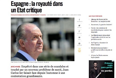 · Le Monde: Le roi d'Espagne Juan Carlos abdique / Un roi transparent, mais pas très clair